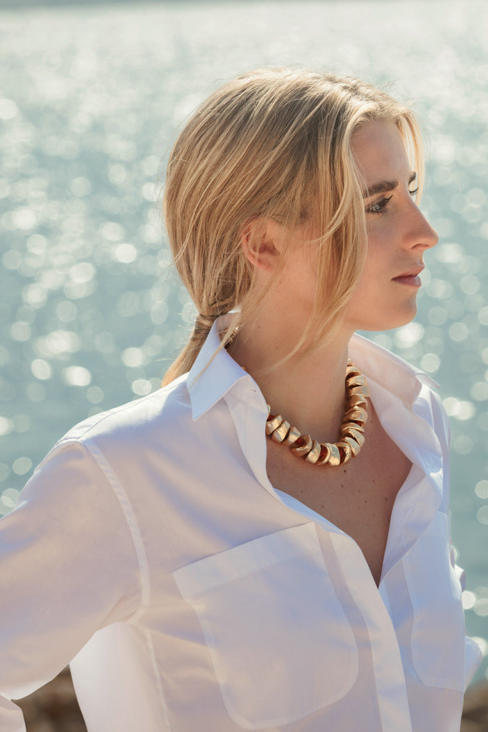The ECLIPSE shirt is a French collar shirt, casual and easy to match all your outfits. With two patch pockets on the front and classic cuffs, it will become your best ally for your everyday looks, summer or winter. The must-have of your wardrobe, which combines high-end finishes and timeless look.